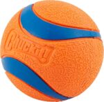 Details: The Chuckit! Ultra dog toy ball is the ultimate fetch ball, designed to bounce higher, float better, last longer, and stand out from the rest. Made from natural, high-bounce rubber, the Ultra Ball encourages dogs to leap and jump for more stimulating games of fetch. Featuring an extra-thick rubber core, these dog fetch toys are durable for long-term use, yet lightweight and buoyant as water toys for dogs. Chuckit! Ultra Balls are strong dog toys that hold up to dirt and slobber and are easy to wipe clean. The bright orange and blue design grabs dogs’ attention in the air and can be easily spotted in tall grass or on water. Available in five sizes ranging from small to XX-large, dogs of all sizes can enjoy fetch with the Chuckit! Ultra Ball. Two-packs are available in select sizes for pet parents to keep an extra Ultra Ball on hand. The Chuckit! Ultra Ball is compatible with the Chuckit! ball launcher for dogs, enhancing fetch with slobber-free pickup and long-distance throws.