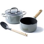 • Cookware set includes: casserole 20cm/3.1l, saucepan with two spouts 16cm/1.6l, 20cm glass lid, 1 x utensil.