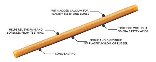 Details: Puppy teething treats from n-bone are designed to meet the specific chewing needs of teething puppies; the flexible and pliable design of the puppy teething treat will provide a satisfying chew treat that will not damage a puppy’s delicate and developing teeth.